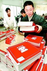 遼寧省印刷技術(shù)研究所近年來致力于圖像輸入輸出及印刷過程計算機軟件開發(fā)與硬件集成的研究與開發(fā),并先后獲得64項科研成果獎。為我國的印刷技術(shù)的進步做出了積極的貢獻。圖為工作人員正在檢查采用新的裁切技術(shù)后的書籍裁切達標率。