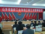 (景華紙業網記者 曉荷 曉舟 報道) 3月30日,山東省造紙協會行業會議暨山東省造紙工業協會三屆三次會議在山東濟南召開。上午8點30分大會在山東造紙工業協會理事長蔡朝清的主持下開始了,大會首先由山東省輕工業辦公室主任、山東造紙協會理事長宋鴻林先生發言,宋理事長首從山東省造紙全行業進行了一個概況介紹,他說山東省2002年產品產銷量收入連續八年居全國第一。全國造紙行業去年總產量為3780萬噸,而山東省就有760萬噸,占全國總產量的五分之一強。