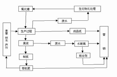 標準實施以后,我們做了一些宣傳工作,通過電視、報紙、網絡;同時舉辦了標準培訓班;造紙企業(yè)各地環(huán)保局的具體工作組織要求,企業(yè)要按照逐步加嚴的標準制定分階段達標方案。環(huán)保局督促企業(yè)制定此方案并負責備案。今年5月份,政府進行了一次暗訪。在所有的四十一家企業(yè)當中,百分之八十五達到了第一階段的標準線,為什么還有百分之十五還沒有達到呢?就是有八家企業(yè)今年要關閉。部分企業(yè)提前達到或基本甚至超過了第二階段的標準,泉林紙業(yè)說的比較保守,其污水中的COD降為150毫克/升,實際上他們的測試結果已低于120毫克/升,已經提前達到第三階段的標準。太陽紙業(yè)能夠穩(wěn)定在150毫克/升左右。華鑫紙業(yè)能穩(wěn)定在200毫克/升,還有一些企業(yè)在200到300毫克/升之間。今年七月,我們在濟寧市召開了草漿造紙企業(yè)污染現(xiàn)場會,這個現(xiàn)場會觀摩一些先進企業(yè)的作風,這些企業(yè)能夠做到的,我們其他企業(yè)也能夠做到;這些企業(yè)的做法,其他企業(yè)也可以借鑒。會上我們的分管省長做了重要講話,講話中一個很重要的問題就是山東要實施全中國最嚴格的環(huán)境管理制度。分階段逐步加嚴的地方污染物排放標準一定要得到堅決地貫徹實施,也就是說,到2010年如果企業(yè)不能達標,我們會堅決地關閉;當然只是丑話在先,實際上我們希望一個企業(yè)都不要關,“不戰(zhàn)而驅人之兵”,不付出社會成本而實現(xiàn)雙贏,現(xiàn)在看來這種可能性是很大的。泉林紙業(yè)的工作就是非常出色的,坦率地說,今年年初他們的工作路線不錯的時候,當時我們的很多同志還是打著問號,不要讓企業(yè)糊弄了環(huán)保局呀!我當時也不敢確信,特意派了兩組暗訪小組,到泉林的排污組,還到高唐縣行政轄區(qū)的出境斷面,企業(yè)可以作假,出境斷面是無法作假的。高唐只有一個出境斷面,兩個暗訪得到的效果都很好,我到泉林集團現(xiàn)場突查生產工藝,突查治污過程,最后判斷這個企業(yè)治污確實過硬,而且名副其實。高唐泉林是我省草制漿量最大,制漿能力最大的企業(yè),泉林這種做法是不是可以認為是中國造紙工業(yè)發(fā)展循環(huán)經濟的一種模式?我們是不是可以把它稱為造紙工業(yè)發(fā)展循環(huán)經濟的泉林模式,如圖所示: