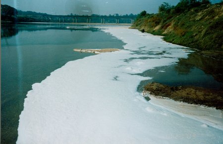 河面被乳白而渾濁的污水污染