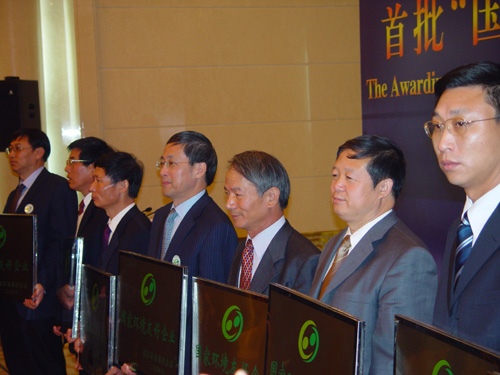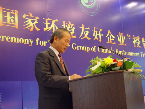 2004年11月16日,國家環保總局在人民大會堂湖北廳舉行了隆重的國家環境友好企業授牌儀式,向首批八家獲此殊榮的企業授牌頒證。國家環保總局局長解振華,副局長汪紀戎、潘岳參加了授牌儀式。解振華局長親自為八家企業頒發了“國家環境友好企業”牌匾。金東紙業總經理吳省芳親手接過了牌匾,并作了簡短的獲獎致辭。