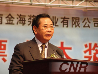 海南省省長衛留成在金海漿紙業投產慶典上致辭