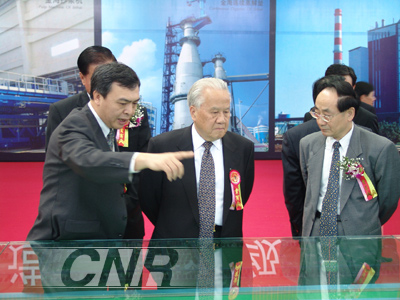 原全國政協副主席、中國企業聯合會會長陳錦華同志(中)參觀金海漿紙業投產慶典展覽