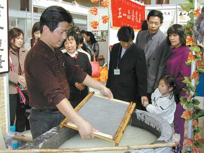 曹式宣紙傳人表演傳統造紙 被喻為“當代蔡倫”(圖)