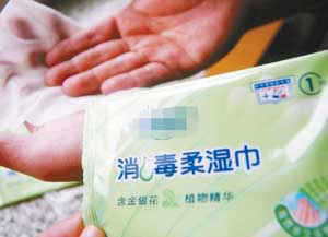 昨日記者獲悉,遼寧省衛(wèi)生廳已經(jīng)正式轉(zhuǎn)發(fā)國家衛(wèi)生部關(guān)于《消毒產(chǎn)品標簽說明書管理規(guī)范》,該規(guī)范將于今年5月1日起施行。此后,市場上銷售的任何消毒品,再也不能有明示或暗示對疾病的治療作用和效果的內(nèi)容。而衛(wèi)生紙、濕紙巾也不準再標注消毒、滅菌等內(nèi)容。