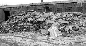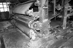 當天下午,記者隨執(zhí)法人員來到遼中縣四方臺洪源昌造紙廠。但當記者隨執(zhí)法人員進入廠房內(nèi),造紙的機器運轉(zhuǎn)著,渾身沾滿土黃色煙塵的工人忙碌著,屋內(nèi)彌漫著嗆人的黃煙,地上到處是黃色的紙漿和紙屑。廠房的墻邊及西面的庫房內(nèi)堆放著大量成大捆的黃土紙成品。
