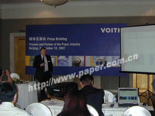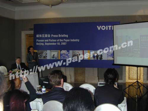 9月18日下午,全球領(lǐng)先的造紙業(yè)供應(yīng)商——福伊特造紙?jiān)诒本├鲲埖暾匍_(kāi)新聞發(fā)布會(huì)。作為2007年中國(guó)國(guó)際紙展最大的參展者之一,福伊特在9月18日至20日舉辦的第15屆國(guó)際紙漿造紙、林業(yè)展覽會(huì)及會(huì)議中推出其最新的造紙尖端技術(shù)及創(chuàng)新。