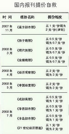 2008年國內各地報紙價格調整