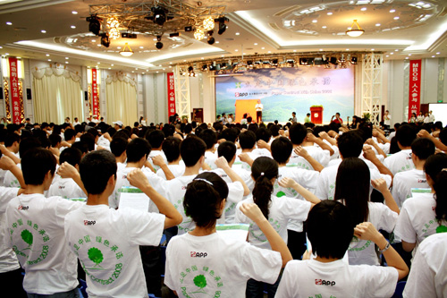 2009年,金光集團APP(中國)在蘇州舉行的制漿造紙可持續發展論壇上,回顧了企業“立足中國、綠色承諾”一年來的成績,并向社會公眾公布相關承諾數據達成的情況,接受社會公眾的監督。2009年,APP下屬的金海漿紙通過審核驗收,成為海南第一家通過階段性驗收的清潔生產試點單位;金華盛和寧波亞洲漿紙業年內分別投資建設了中水回用設備和Fenton污水處理系統;金東紙業截至2009年底的環保總投入已達11.5億元。同時,APP(中國)在2009年初完成了集團首個“碳足跡”評估項目,成為國內制漿造紙行業中首家進行大規模碳排放評估的企業,并為長期的節能減碳管理明確了基準線。