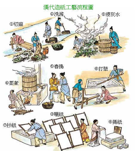 紙的發明、發展也是經過了一個曲折的過程。 公元105年發明造紙后,造紙術就從河南向經濟文化發達的其它地區傳播。蔡倫被封到陜西洋縣為龍亭侯,造紙術就傳到漢中地區并逐漸傳向四川。據蔡倫家鄉湖南耒陽的民間傳說,蔡倫生前也向家鄉傳授過造紙術。東漢末年山東造紙也比較發達,出過東萊縣(今掖縣)的造紙能手左伯。公元二世紀造紙術在我國各地推廣以后,紙就成了和縑帛、簡 牘的有力的競爭者。公元三到四世紀,紙已經基本取代了帛、簡而成為我國唯一的書寫材料,有力地促進了我國科學文化的傳播和發展。公元三到六世紀的魏晉南北朝時期,我國造紙術不斷革新。在原料方面,除原有的麻、楮外,又擴展到用桑皮、藤皮造紙。在設備方面,繼承了西漢的抄紙技術,出現了更多的活動簾床紙模,用一個活動的竹簾放在框架上,可以反覆撈出成千上萬張濕紙,提高了工效。在加工制造技術上,加強了堿液蒸煮和舂搗,改進了紙的質量,出現了色紙、涂布紙、填料紙等加工紙。