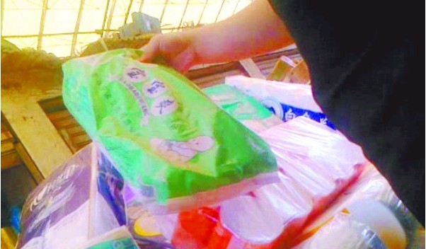 就在這位中年婦女回答時(shí),另一位順手拿來了兩包紙尿褲擺在記者眼前,她介紹說:“這兩包就是價(jià)格相差比較大的,我右手這包就是2毛一片的,左手的就是1塊6一片的,你看看你需要什么樣的?”