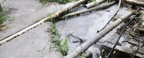 中盛紙廠生產(chǎn)排放的污水仍在流淌