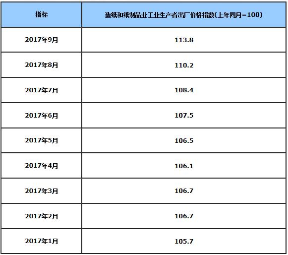 9月全國造紙和紙制品業工業生產者出廠價格指數