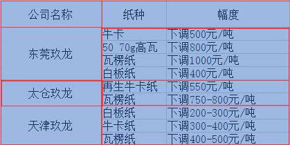 11月7日,一個玖龍降價的消息開始在朋友圈里瘋傳!有說降750元/噸的,也有說降1000元/噸的,到底什么情況?一時間市場大亂!據(jù)小編調(diào)查得知,玖龍確實降價了,總的下調(diào)幅度為200-1000元/噸! 近日,紙價行情多變,行業(yè)內(nèi)人心惶惶,11月7日突然爆出玖龍降價消息,這到底是真是假?華印傳媒秉持一貫負責、嚴謹?shù)膽B(tài)度,對真實情況做了詳盡調(diào)查。小編從玖龍方面了解到,玖龍的確降價了,降價企業(yè)包括天津玖龍、東莞玖龍、太倉玖龍,跌價紙種涉及玖龍的牛卡、瓦紙、再生牛卡紙、白板紙等。 以下是小編根據(jù)市場情況調(diào)查得知,僅供參考,具體情況請咨詢廠家: