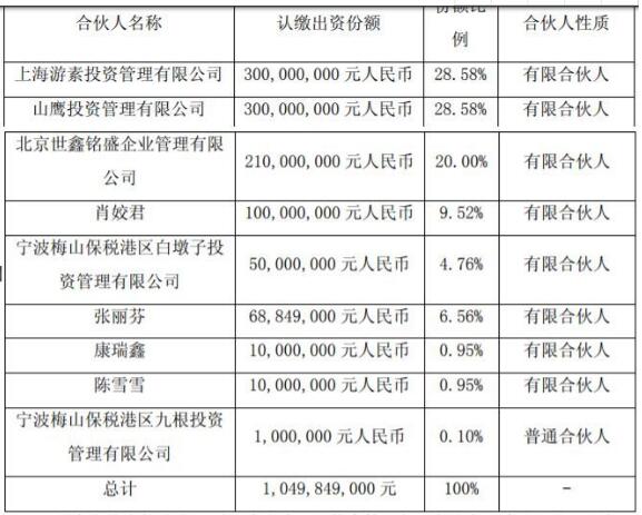 為借助專業的投資管理平臺尋找優質標的,進一步拓寬盈利渠道,促進山鷹國際控股股份公司的可持續發展及穩定增長,山鷹紙業全資子公司山鷹投資管理有限公司擬出資人民幣3億元參與設立寧波梅山保稅港區九根兄弟股權投資中心(有限合伙)。 山鷹紙業出資3億參與設立有限合伙企業 為借助專業的投資管理平臺尋找優質標的,進一步拓寬盈利渠道,促進山鷹國際控股股份公司(以下簡稱“山鷹紙業”)的可持續發展及穩定增長,山鷹紙業全資子公司山鷹投資管理有限公司(以下簡稱“山鷹資本”)擬出資人民幣3億元參與設立寧波梅山保稅港區九根兄弟股權投資中心(有限合伙)(暫定名,以工商部門最終核準的名稱為準)。 根據各方簽訂的合伙協議,近日,該合伙企業完成了工商登記注冊并取得了營業執照,具體工商登記信息如下:公司名稱:寧波梅山保稅港區玖譽澤股權投資合伙企業(有限合伙)主體類型:有限合伙企業住所:浙江省寧波市北侖區梅山大道商務中心七號辦公樓1056室執行事務合伙人:寧波梅山保稅港區玖澤投資管理有限公司經營范圍:股權投資。(未經金融等監管部門批準不得從事吸收存款、融資擔保、代客理財、向社會公眾集(融)資等金融業務) 基金總規模超10億元 山鷹投資占28.58% 據悉,該基金規模10.5億元人民幣,山鷹資本擬以自有資金出資人民幣3億元,占基金總規模的28.58%。 其中,山鷹投資份額比例為28.58%,與上海游素投資管理管理公司所占的份額比例相同。