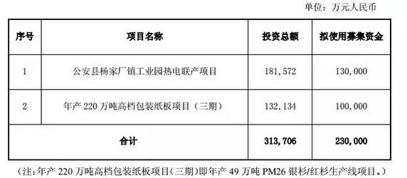 山鷹紙業(yè)募集不超過23億元投向湖北年產(chǎn)220萬噸高檔包裝紙板項(xiàng)目(三期) 山鷹紙業(yè)3月28日晚間披露可轉(zhuǎn)換債預(yù)案,本次擬發(fā)行可轉(zhuǎn)換公司債券募集資金總額不超過23億元(含23億元),投向湖北公安縣楊家廠鎮(zhèn)工業(yè)園熱電聯(lián)產(chǎn)項(xiàng)目和年產(chǎn)220萬噸高檔包裝紙板項(xiàng)目(三期)。