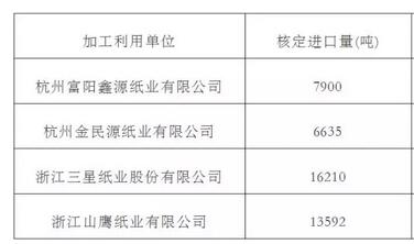 僅有三家紙廠獲得新增量,核定廢紙進口量為3.0745萬噸 從本批廢紙進口許可名單可知,浙江山鷹紙業(yè)有限公司為原許可證更換口岸,實際上獲得新增量的僅有杭州富陽鑫源紙業(yè)有限公司、杭州金民源紙業(yè)有限公司、浙江三星紙業(yè)股份有限公司三家紙廠,總核定進口量為3.0745萬噸。