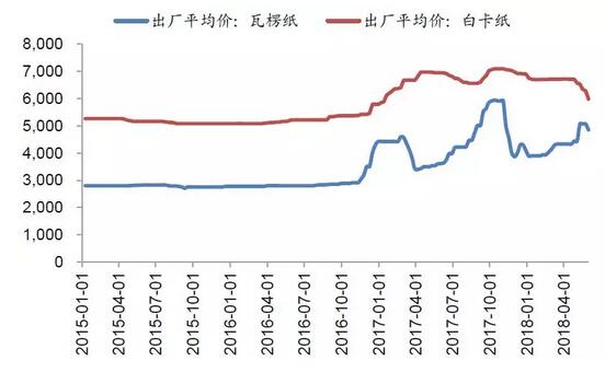 圖:晨鳴紙業(yè)和合興包裝月K線對比 上圖是造紙龍頭晨鳴紙業(yè)和包裝龍頭合興包裝的月K線走勢圖對比,從16年初開始,造紙板塊走了兩年大牛市,晨鳴紙業(yè)的股價從6元漲至20元,不可謂不牛。而當預(yù)期反轉(zhuǎn),整個大環(huán)境又無法配合的時候,晨鳴紙業(yè)的股價又跌回至12元,接近腰斬。 在晨鳴紙業(yè)走牛的這兩年,合興包裝從6元附近跌至最低3.22元。但2月份至今,當晨鳴紙業(yè)腰斬的時候,合興包裝卻走出了一波特別強勢的獨立行情,期間漲幅超過60%。 紙業(yè)上下游的基本面邏輯完美體現(xiàn)在兩個公司的股價上。接下來要判斷的是,紙價是否還會漲? 紙價上漲空間有多大? 這一輪紙價上漲,主要原因是供給側(cè)改革和環(huán)保,但隨著造紙行業(yè)逐步整合,供給側(cè)改革的邊際效應(yīng)逐步減弱。 2018年起,瓦楞紙、白板紙價格整體逐步趨穩(wěn)。近期,玖龍、山鷹等多家龍頭造紙企業(yè)下調(diào)瓦楞紙報價,一方面國廢高位回調(diào),另一方面前期漲價幅度過大,下游備貨提前透支6、7月份訂單。