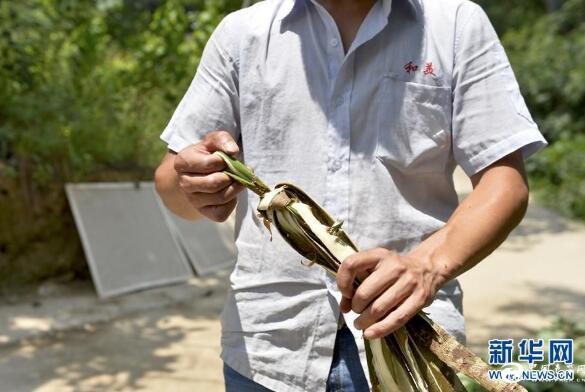 7月22日,“西和手工麻紙”傳承人劉小波將構(gòu)樹皮打結(jié)。