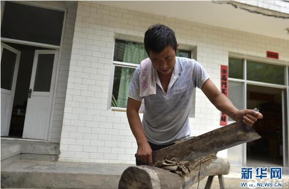 7月22日,“西和手工麻紙”傳承人劉耀清在切穰。新華社記者李笑攝