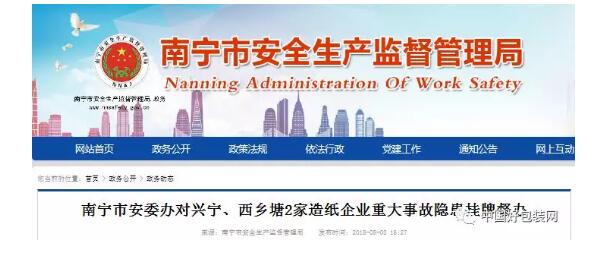 8月3日,廣西省南寧市安全生產(chǎn)監(jiān)督管理局發(fā)布通告:兩家紙品廠因沒有設(shè)置明顯安全警示標(biāo)志等,存在重大生產(chǎn)安全事故隱患,被南寧市安委辦掛牌督辦,并責(zé)令在今年11月底前,完成隱患整改。