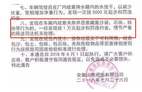 想要繼續擴大自己的打包站的用戶可以考慮多一些投入在前期挑揀上,假設A級紙是2900元/噸,B級紙2800元/噸,一車就是幾千的差距~ 三、紙廠分類我們,我們也分類紙廠 行走廢紙江湖,必須得有一個清晰的思路和一套有序的“行業經”來作為自己屹立不倒的必殺技。 在紙品定級與扣點上,不同紙廠是不一樣的,這其中為廢紙打包站帶來的利潤是很誘人的。正因此紙廠驗收的時候也是會將我們分為三六九等的,A某總是賣水分很重的紙,B某家的紙總是離一級黃板差那么點意思,但是挺干凈,諸如此類,打包站和紙廠是長久合作的,打一槍換一個地方不利于打包站長久發展。 這時回過頭看看自己擴充的紙廠資源,掌握了紙廠的各項規則,做一個分類,例如調價比較跳的森林等;驗收標準上,有的廠對統貨要求是黃板紙含量在50%以上,有的廠黃板紙和灰黃板含量≥20%,允許雜紙含量80%以內等等。自然就會發現合適的銷路,不過這里需要注意平衡一下運費來控制利潤。 給玖龍送貨容易嗎?又出裝車規范了,打包站老板要注意啦! 上周,玖龍發通知對到貨要求及違規防水的做出嚴格規定。今日又收到東莞玖龍對裝車要求的規定,最高加扣4%。現在打包站給玖龍送貨越來越嚴格了,各打包站老板要注意啦! 東莞玖龍 【東莞玖龍】各位供應商,你們好,為提高國廢進廠卸貨效率,特通知如下: 1.裝車要求規范(具體看告知函及圖片),不合要求須調整紙包,收費標準20元/噸 2.進廠前所有紙包須貼填寫好的綠色標簽,未貼標簽或者粘貼不全的在原有扣點基礎上加扣2%;如發現在廠區貼標簽,加扣4%。 送貨東莞玖龍注意事項: 1.裝車規范: 1)、裝車后紙包的最低處到紙包最高處必須超過1.8米(純廢紙的高度),上下層寬度保持一致,不能有缺包現象存在。 2)、請不要選用車板面高度與地面距離低于1.2米的車輛。 3)、不要使用裝載廢紙量低于10噸的車輛送貨到我司。 4)、裝車包與包之間不能存有可視空隙,紙包不能交叉裝車,大小包不能混裝。 注:如發現有任何一點不符合以上要求的,該車廢紙在原有收購價格基礎上降20元/噸進行結算。 2.國廢紙包標簽粘貼:送我司的所有廢紙包必須粘貼標簽,進廠前每包紙包必須粘貼完畢,未貼標簽或者粘貼不全的在原有扣點基礎上加扣2%,如有發現在我司廠區內粘貼標簽的,在原有檢測基礎上加扣4%。 標簽可自行印刷,尺寸不得小于7CM*7CM,顏色為綠色、藍色等具有明顯標識的不干膠紙。 以上規定從2018年8月20日起,現場會嚴格按照此規定執行,近期請通知供應商做好通知落實。