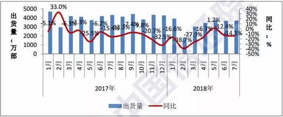6家預收款下降的酒企,降幅均超過30%,最高降幅達到80%。作為酒企龍頭的茅臺,今年上半年預收賬款為99.40億元,較上期期末數(shù)減少31.11%;江蘇區(qū)域白酒今世緣預收賬款下降70%,從8.15億元降至2.37億元,今世緣稱主要原因是季節(jié)性因素。 智能終端:上半年手機銷量銳減17% 手機做為智能終端的主力,今年前七月銷量令人憂心。據(jù)中國信通院最近發(fā)布的數(shù)據(jù)顯示,2018年1-7月,國內(nèi)手機市場出貨量2.33億部,比下降17.3%。