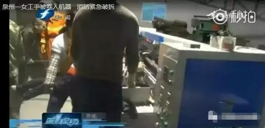 據工友黃女士介紹,該被困者為本地人,50多歲。當時她一個人正在操作機器加工,突然不知道怎么回事,兩只手臂就被卷入機器里,工友看見后連忙關掉電源并報警求救。
