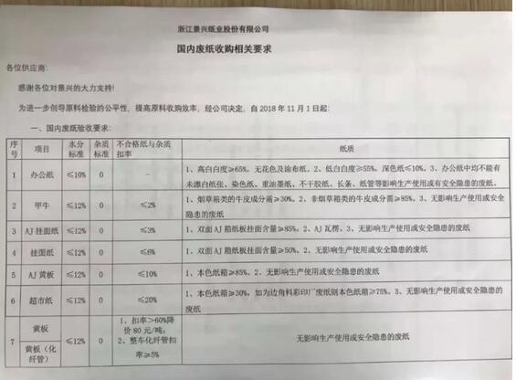 一、浙江嘉興景興紙業,國內廢紙收購相關要求。(可點擊圖片,放大🔍查看)