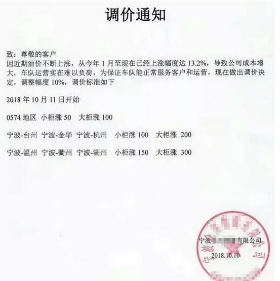 多家車隊(duì)貨運(yùn)公司也率先發(fā)出運(yùn)價(jià)調(diào)整商議函,具體調(diào)整幅度在當(dāng)前運(yùn)價(jià)基礎(chǔ)上上調(diào)10%。