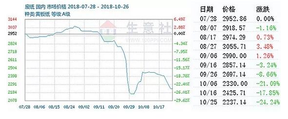 廢紙已下調2000元/噸,數年難遇,廢紙商倉皇逃離 齊魯晚報記者了解到,自農歷八月十五以后,廢品價格開始大幅走低,至今仍持續低迷。從事廢品收購多年的徐先生坦言,近幾年紙盒類還沒有如此大幅度的降價,直接導致每日收購量大幅縮減。 “降價之前每日至少收購1000斤。現在自從紙盒大幅降價后每日最多600斤。”徐先生稱,明顯感覺到除了一些剛裝完修必須售賣的紙盒外,好多市民咨詢完價格后表示再等等。因為掙得少,身邊很多同行已經不干了。 事實也確實如此,近一個多月以來,廢紙價格急轉直下,開啟跌跌不休模式。華印小編發現:以山東地區為例,10月25-26日,包括昌樂世紀陽光紙業、東營華泰紙業、天地緣紙業等在內的數家紙企仍在下調廢紙收購價格,下調幅度集中在50元/噸,下調后的廢紙箱價格在1600-2500元/噸。這個價格與今年廢紙高位價格3300元/噸相比,最高下調了1700元/噸。而在廣東市場目前廢紙價格仍在下調,當前價格在1800-2500元/噸左右。相比今年5月3800-3900元/噸的價格高點,最高已下調了2000元/噸,這個幅度確實令人咋舌。 此外,據生意社數據監測:10月25日國內廢黃板紙市場收購價格繼續延續著前幾天的下行趨勢,當日均價為2237.14元/噸,下調價格在30-100元/噸左右,與7月底相比跌幅高達24.24%。