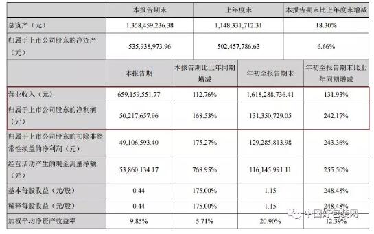 吉宏股份前三季度營收、利潤雙增長,增幅均遠超100% 10月31日,吉宏股份發布了2018年三季度報告。在第三季度,吉宏股份實現營業收入6.59億元,同比增長112.76%,歸屬于上市公司股東凈利潤0.50億元,較上年同期增長168.53%。 而從年初至報告期末,即今年1-9月份,吉宏股份實現營業收入16.18億元,同比增長131.93%,歸屬于上市公司股東凈利潤1.31億元,較上年同期增長242.17%。
