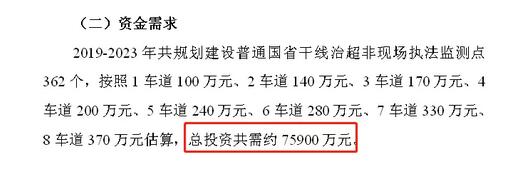 從官方發布的文件中可以看到,修建362個監測點也是耗費巨大,總投資大約要花費75900萬元,也就是7個多億!為了治超可以說真的下了血本!