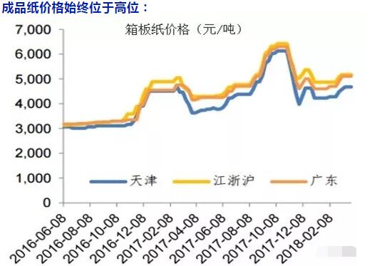 包裝紙利潤大幅下降: 造紙業利潤較去年同期下降22.6%,紙制品利潤較去年同期下降19%。 造紙廠庫存較往年明顯偏高: 造紙業庫存金額較去年同期增長41%,而紙制品庫存金額較去年同期僅增長7.7%。以上數據說明今年下游加工廠對成品紙價格已經不再盲目恐慌及預判上漲,相對理性的適度備貨,于是終端市場需求不振的壓力被逐級向上傳導至造紙廠,導致造紙廠庫存明顯上升。 成品紙價格始終位于高位: