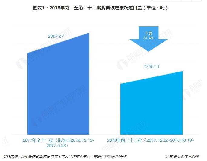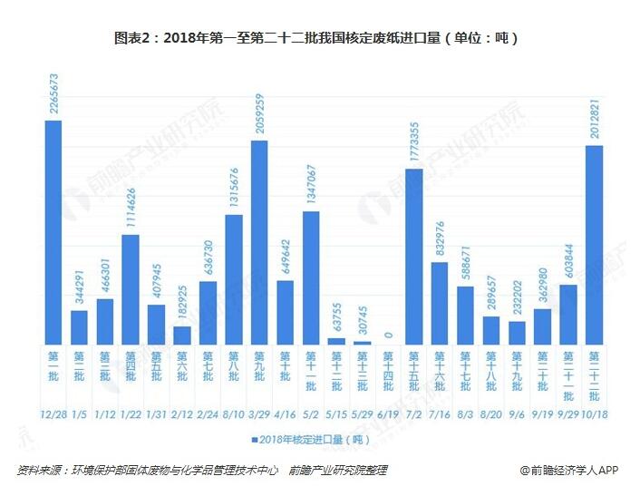 2018年10月18日,環(huán)保部公示了2018年第二十二批固體廢物原料進(jìn)口許可證獲批名單。此批名單一共增加了4家新審批廢紙加工利用企業(yè),分別為江蘇富新紙業(yè)有限公司、江蘇京環(huán)隆亨紙業(yè)有限公司、廣東華泰紙業(yè)有限公司、浙江上游紙業(yè)有限公司。2018年前二十二廢紙審批總額度為1758.11萬噸較2017年下滑37.4%。