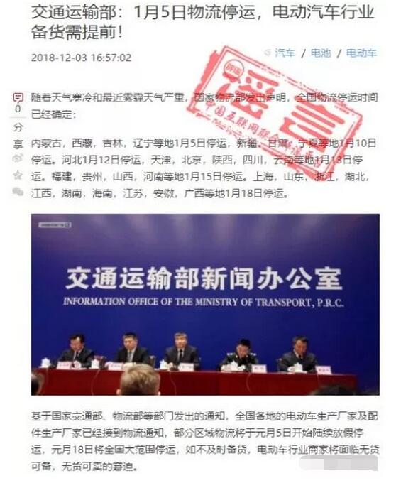 對此,中國互聯網聯合辟謠平臺向交通運輸部求證,此為謠言。實際上,所謂“國家物流部”、“國家運輸部”等根本是“查無此部”。 在國務院組織機構中,只有“交通運輸部”,而交通運輸部從來沒有發布過所謂的“物流停運通知”。