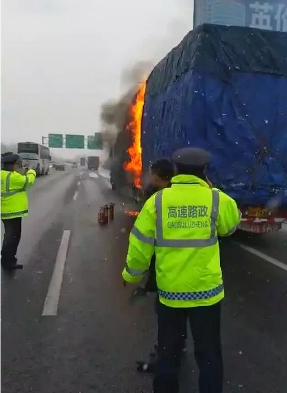 跑到高速公路上后,他看到一輛藍色大貨車停在應急車道內(nèi),車廂中部位置火光熊熊。大貨車的車頭側翻在地上,萬幸車內(nèi)兩名司乘人員已經(jīng)自行逃出,身體并無大礙。 據(jù)了解,大貨車司機發(fā)現(xiàn)車廂起火后,急忙停在應急車道內(nèi)。因剎車太猛,加上降雪造成地面很滑,導致車頭被車廂頂翻。大貨車司機和高速交警也曾找來數(shù)個滅火器,試圖將火撲滅。無奈車上運載的是衛(wèi)生紙,起火后蔓延非常迅速,而且非常難以撲救,眾人用光滅火器后,只能等待消防車趕到來滅火。最終這輛大貨車被完全燒毀,一車衛(wèi)生紙也化成了灰燼。