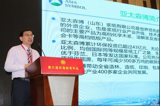 1月8日,由《環(huán)境教育》雜志社主辦的第六屆環(huán)境教育年會在天津召開。亞太森博(山東)漿紙有限公司被評為“支持環(huán)境教育事業(yè)先進(jìn)單位”,公司代表參會領(lǐng)獎(jiǎng)并作為與會企業(yè)代表分享了企業(yè)開展環(huán)境教育的經(jīng)驗(yàn)和社會責(zé)任舉措。
