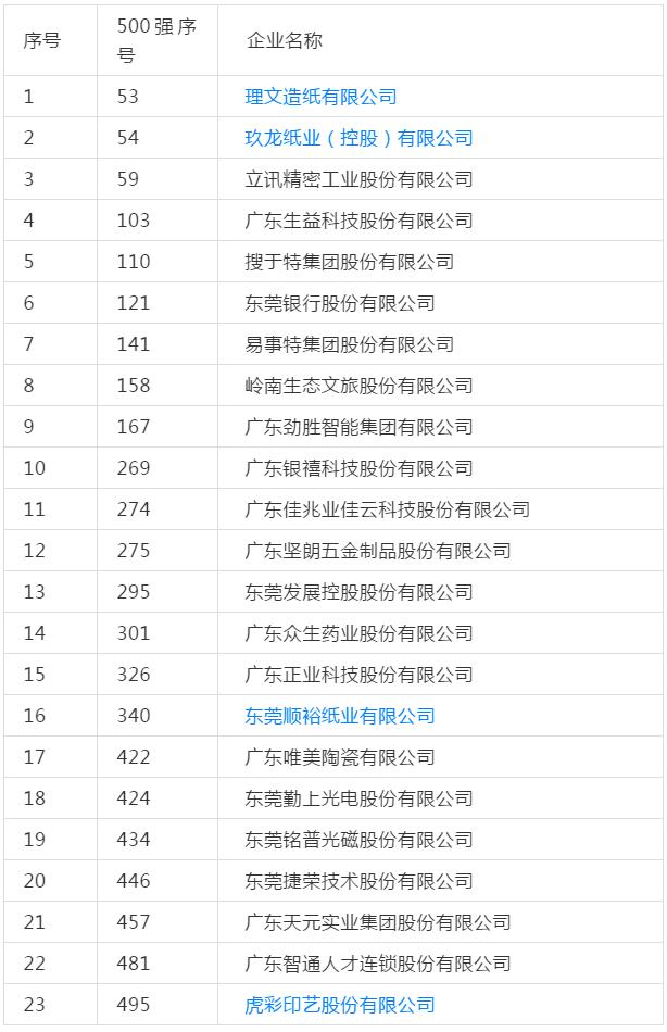 其中,共有23家東莞企業入榜,數量排名全省第四,僅次于深圳226家、廣州122家、佛山39家。