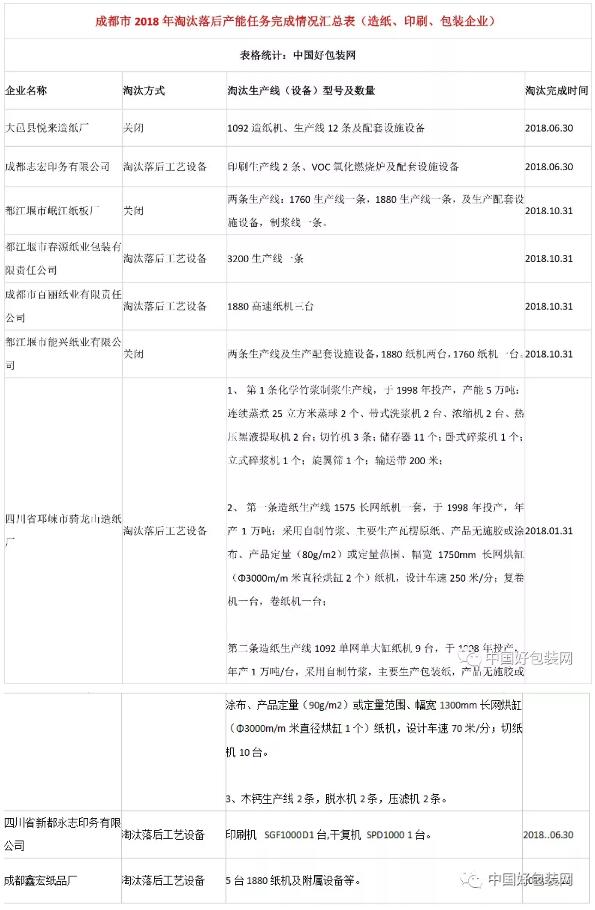 據(jù)筆者統(tǒng)計(jì),共有9家造紙、包裝、印刷企業(yè)被列入名單。其中,2家造紙廠、1家紙板廠已直接關(guān)閉,其余6家企業(yè)淘汰相關(guān)落后工藝設(shè)備。以下為具體情況: