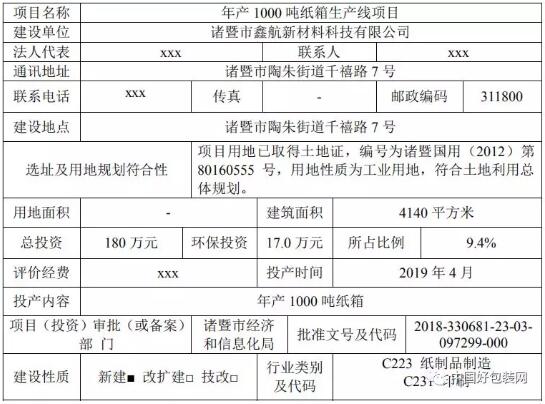 公告顯示,諸暨市鑫航新材料科技有限公司擬投資180萬元,租用浙江美綺爾紡織有限公司位于諸暨市陶朱街道千禧路7號的空置廠房進行生產,租用建筑面積為4140平方米,實施年產1000噸紙箱生產線項目。