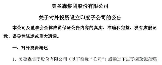 繼國內(nèi)布局后,美盈森又將目光瞄準了海外!2月1日,美盈森發(fā)布公告稱,將使用自籌資金不超過5000萬美元于印度投資設(shè)立子公司,主要從事環(huán)保包裝紙制品的設(shè)計、生產(chǎn)和銷售。