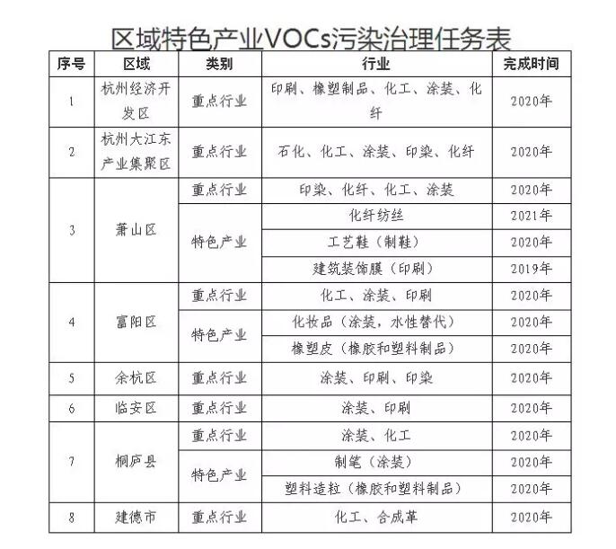 (2)區(qū)域特色產(chǎn)業(yè)VOCs污染治理任務(wù)表