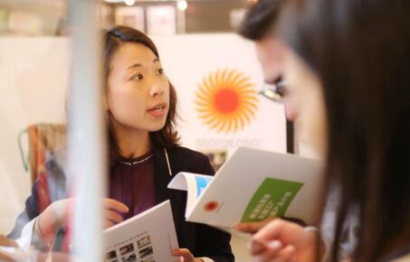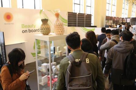 斯道拉恩索消費紙板中國區產品經理(左)解答參觀者問題