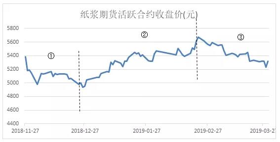 紙漿期貨:2019年一季度復(fù)盤(pán) 紙漿2018年11月27日至上市以來(lái)總共經(jīng)歷3個(gè)趨勢(shì)性的階段。