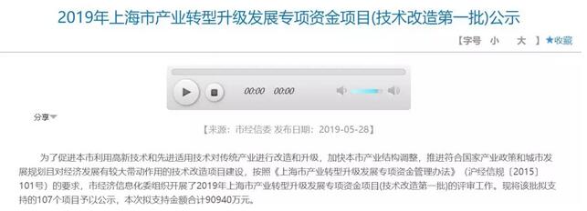 上海市經信局為了促進上海市利用高新技術和先進適用技術對傳統產業進行改造和升級,加快本市產業結構調整,推進符合國家產業政策和城市發展規劃且對經濟發展有較大帶動作用的技術改造項目建設,按照《上海市產業轉型升級發展專項資金管理辦法》(滬經信規〔2015〕101號)的要求,市經濟信息化委組織開展了2019年上海市產業轉型升級發展專項資金項目(技術改造第一批)的評審工作。