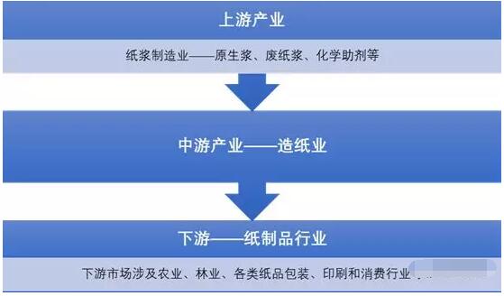 造紙工業是我國基礎原材料行業,產業鏈分為上游紙漿制造業、中間造紙行業和下游紙制品制造行業,涉及農業、林業、各類紙品包裝、印刷和消費行業等,涉及行業眾多,對國內相關產業發展具有明顯拉動作用。 造紙產業鏈示意圖