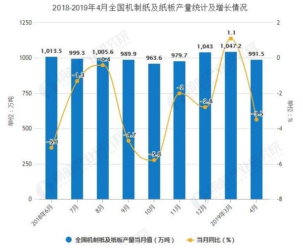 2019年4月全國機制紙及紙板產量累計超3700萬噸
