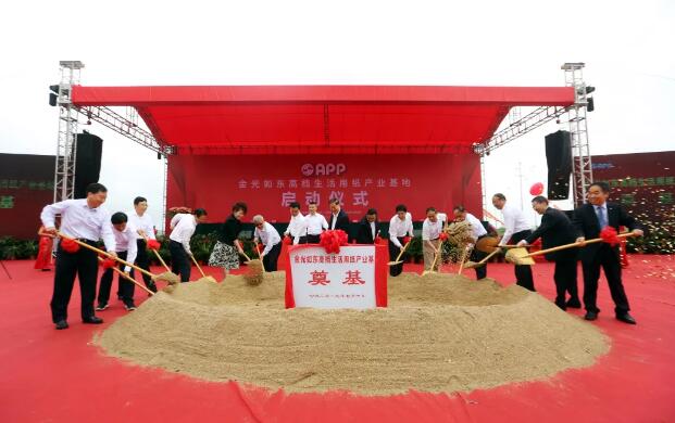 金光如東高檔生活用紙產(chǎn)業(yè)基地啟動儀式 2019年7月10日——如東,金光集團(tuán)APP(中國)旗下金紅葉紙業(yè)集團(tuán)的高檔生活用紙產(chǎn)業(yè)基地(以下簡稱 “產(chǎn)業(yè)基地” )在江蘇如東洋口港經(jīng)濟(jì)開發(fā)區(qū)舉行了隆重的啟動儀式,標(biāo)志著金光集團(tuán) APP(中國)與江蘇省合力打造的首個(gè)智能化制造戰(zhàn)略升級項(xiàng)目正式進(jìn)入發(fā)展快車道,APP(中國)向高質(zhì)量發(fā)展邁出了的關(guān)鍵一步。 儀式當(dāng)天,南通市委副書記、市長徐惠民,江蘇省僑聯(lián)副主席兼秘書長陳鋒,南通市副市長徐新民,如東縣委書記沈峻峰,縣政協(xié)主席陳建華等如東縣四套班子全體領(lǐng)導(dǎo),金光集團(tuán)董事長兼總裁黃志源,金光集團(tuán) APP(中國)高級顧問虞彪,副總裁翟京麗,董事長辦公室總經(jīng)理林政道,基地指揮部總經(jīng)理陳宇,以及省、市、縣相關(guān)部門和鎮(zhèn)區(qū)負(fù)責(zé)人出席。如東縣委副書記、縣長陳慧宇主持啟動儀式,各方嘉賓共同見證。 共話發(fā)展藍(lán)圖