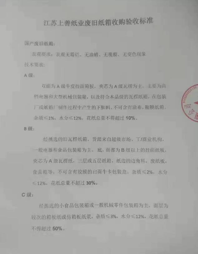 一、江蘇上善紙業,廢舊紙箱收購驗收標準。